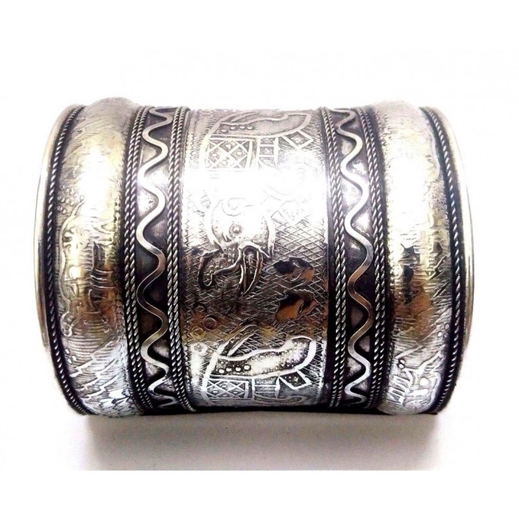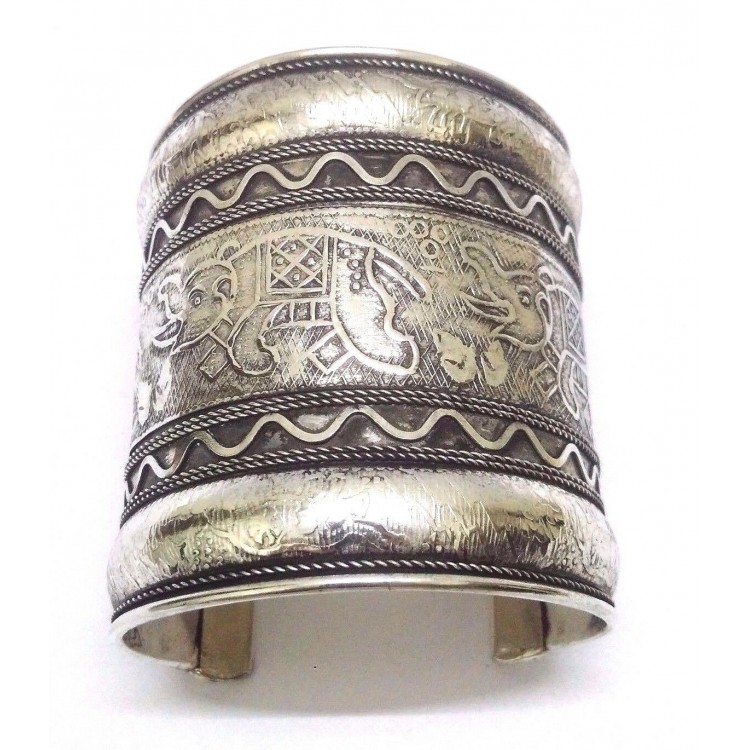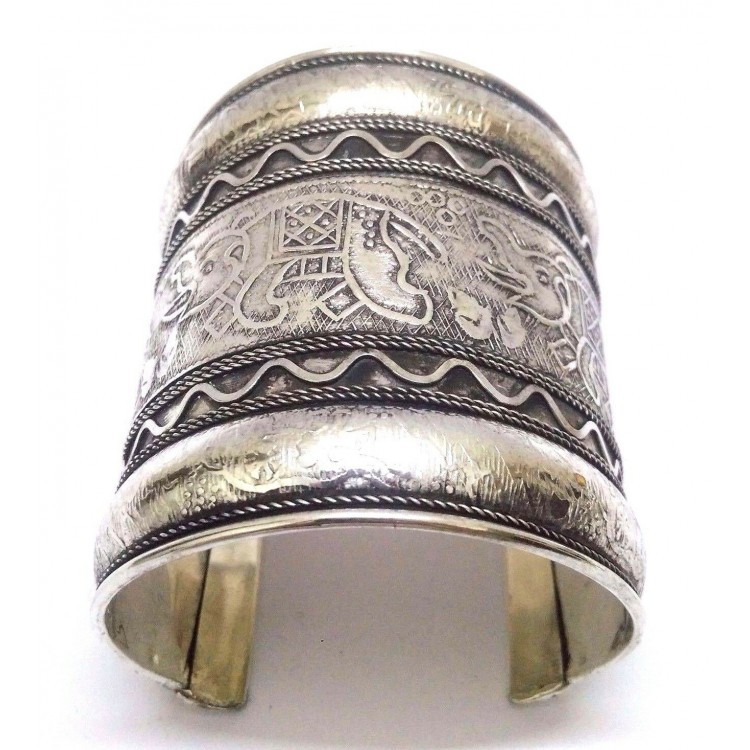 ELEPHANT Silver Oxidized Cuff Bracelet Charm Wristlet Wristband Bangle Jewelry E