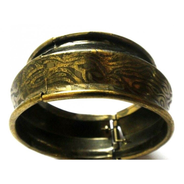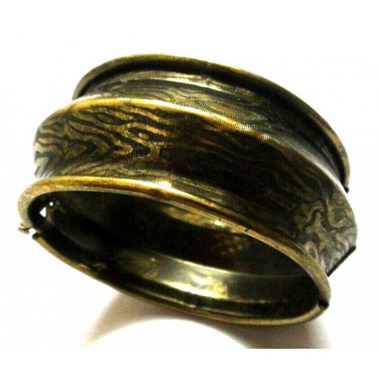 Open Ended Bangle Bracelet Cuff Band - Vintage Look - Antique Gold - II
